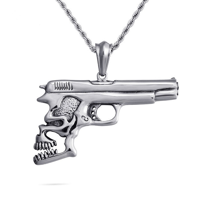 Hip Hop Pistol Skull Pendant Necklace