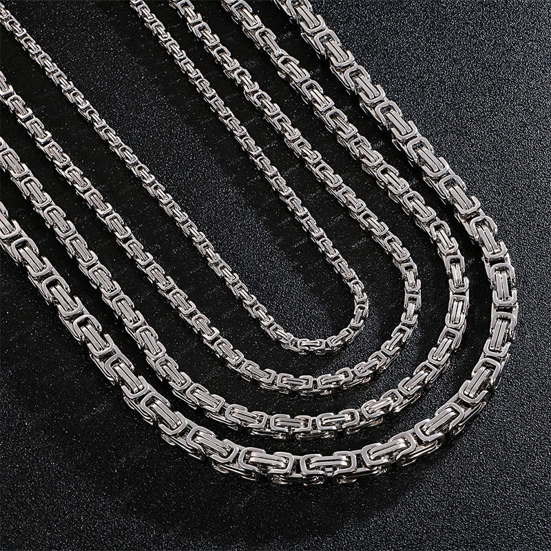 Men Stainless Steel Byzantine Box Chain